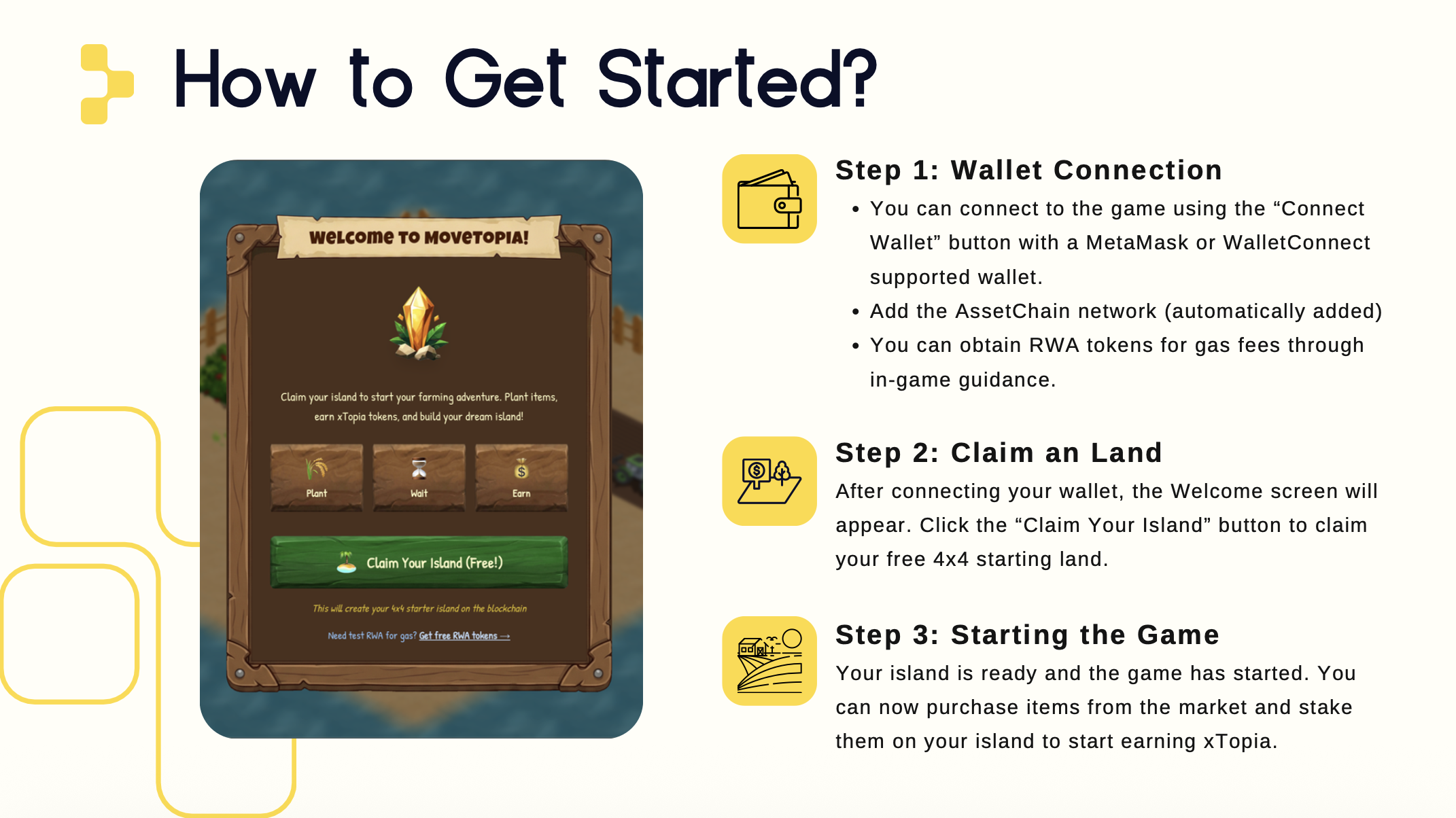 Explore the full MoveTopia Pitch Deck to get a detailed overview of the game mechanics, NFT economy, staking model, and long-term vision. This document is designed for players, partners, and investors who want to understand how MoveTopia is building a sustainable Web3 farming ecosystem.