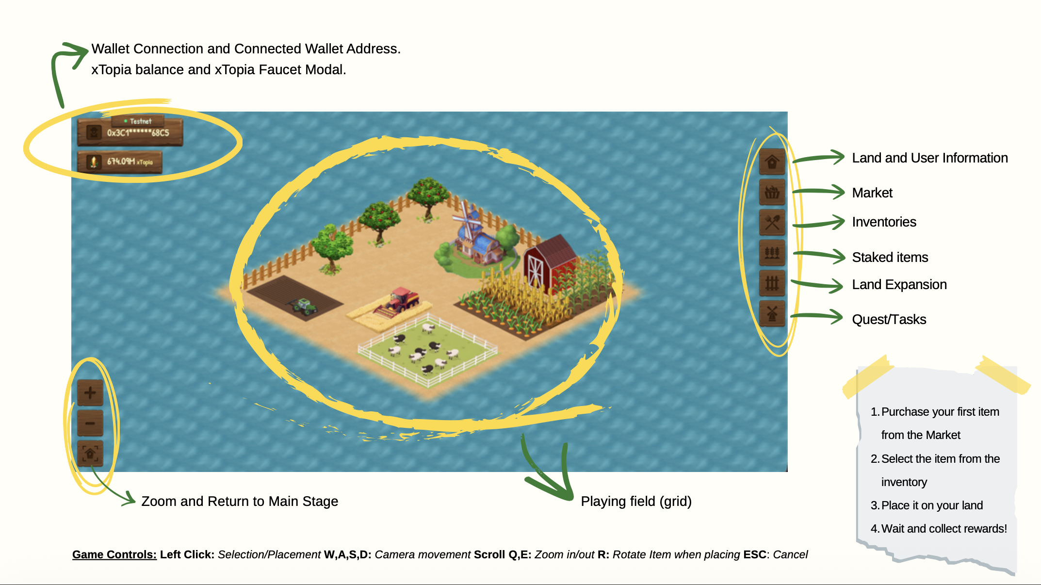 Thanks to the grid-based game area, NFT items can be strategically placed and the island can be freely managed with camera controls.