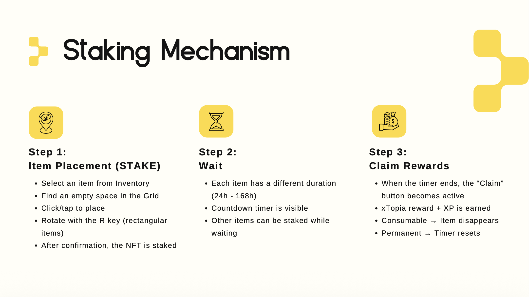 Staking in MoveTopia forms the core earning mechanism of the game.